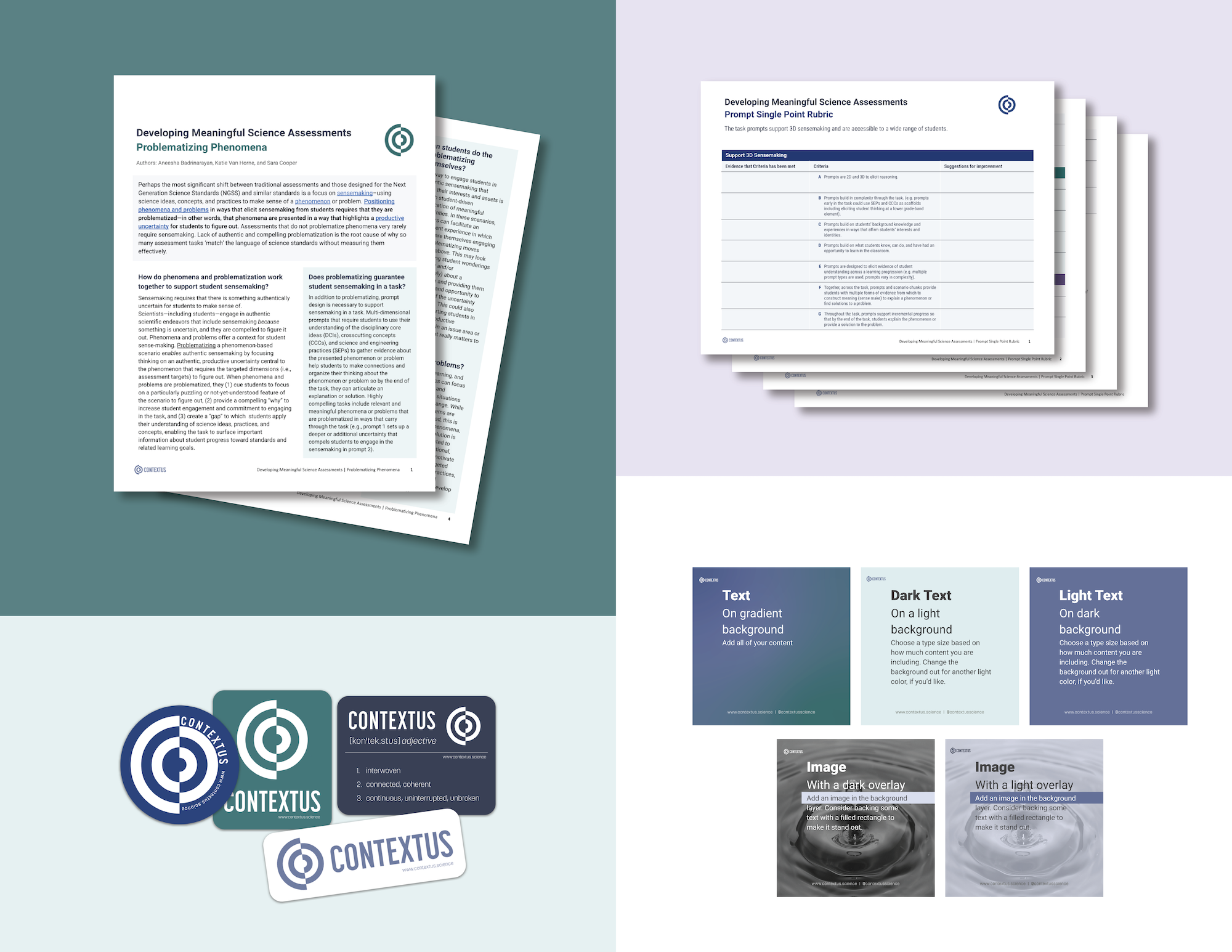 Designed and developed a cohesive identity, branding, and design system for Contextus Science with an emphasis on document layouts and templates that can be edited in google docs and slides.
